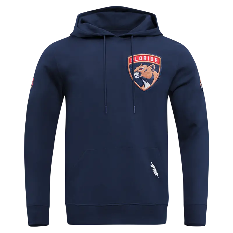 NHL FLORIDA PANTHERS CLASSIC CHENILLE MEN’S DOUBLE KNIT PULLOVER HOODIE (MIDNIGHT NAVY)