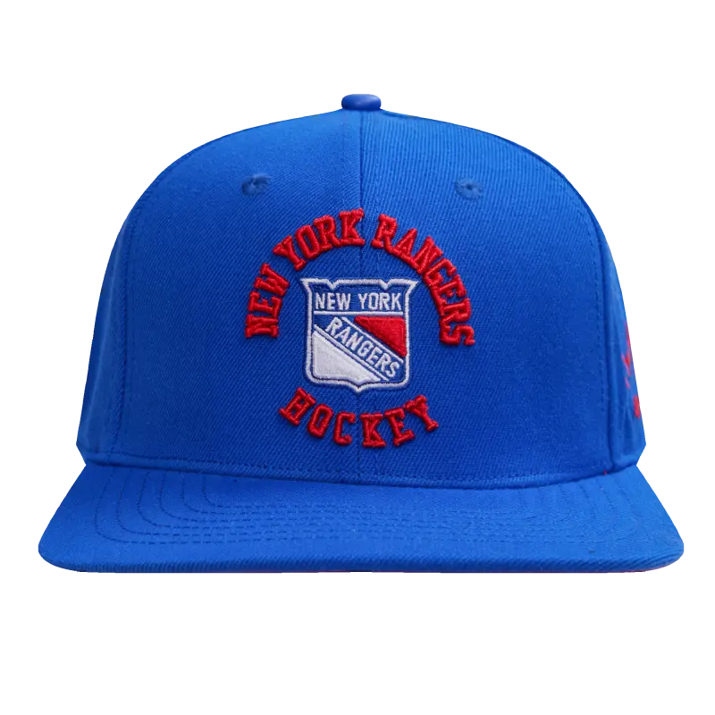 NHL NEW YORK RANGERS RETRO CLASSIC UNISEX WORDMARK LOGO WOOL SNAPBACK (ROYAL BLUE)