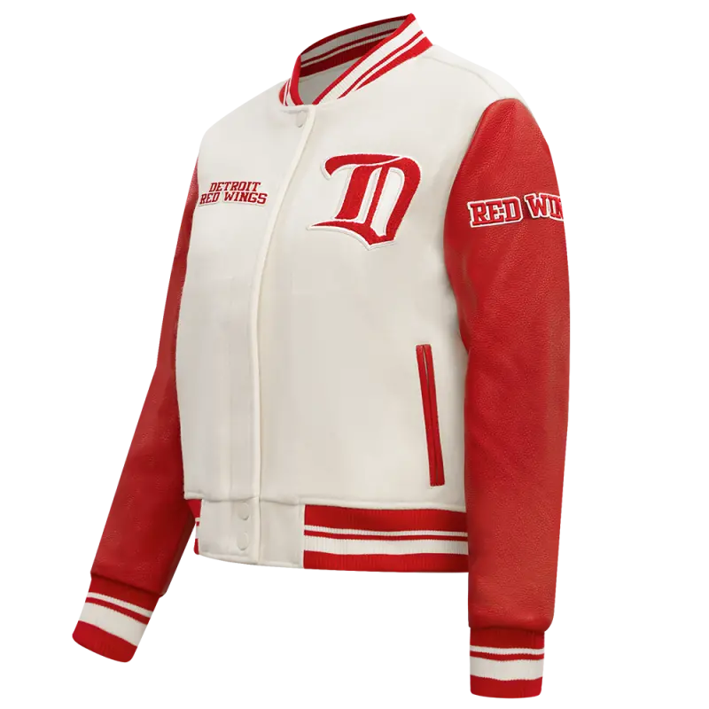 NHL DETROIT RED WINGS RETRO CLASSIC WOMEN’S RIB WOOL VARSITY JACKET (EGGSHELL\/ RED)