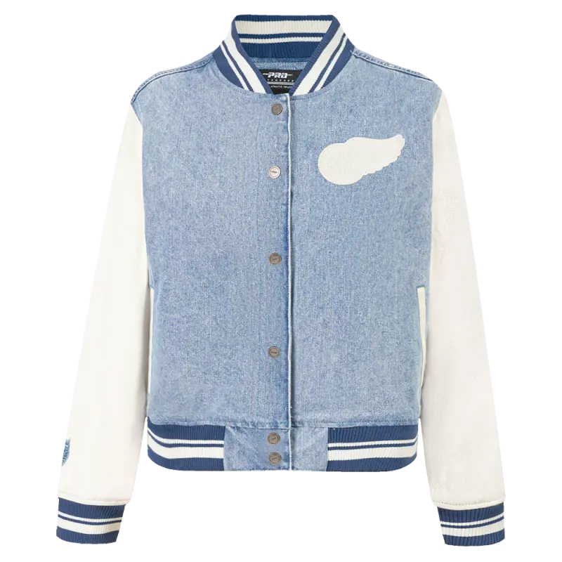 NHL DETROIT RED WINGS VARSITY BLUES WOMEN’S DENIM VARSITY JACKET (DENIM\/LINEN)