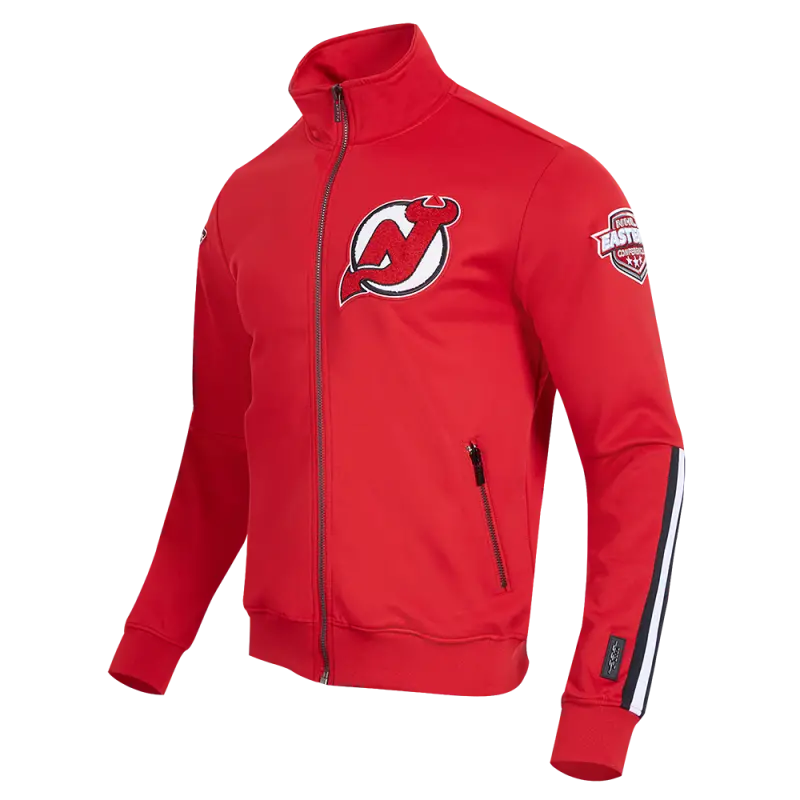 NHL NEW JERSEY DEVILS CLASSIC CHENILLE MEN’S DOUBLE KNIT TRACK JACKET (RED\/BLACK)
