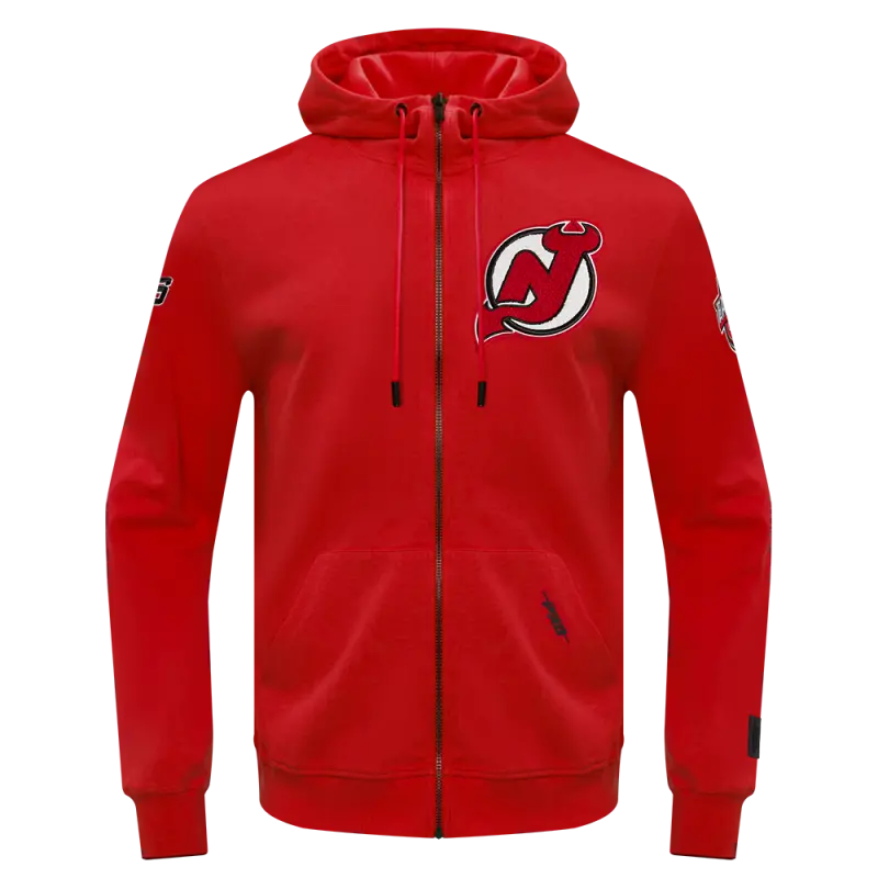 NHL NEW JERSEY DEVILS CLASSIC CHENILLE MEN’S FULL ZIP PULLOVER HOODIE (RED)