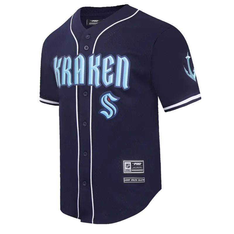 NHL SEATTLE KRAKEN CLASSIC MEN’S MESH BUTTON DOWN JERSEY (MIDNIGHT NAVY)