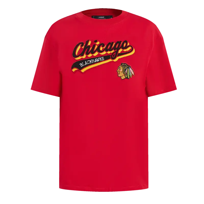 NHL CHICAGO BLACKHAWKS SCRIPT TAIL WOMEN’S BOYFRIEND TEE (RED)