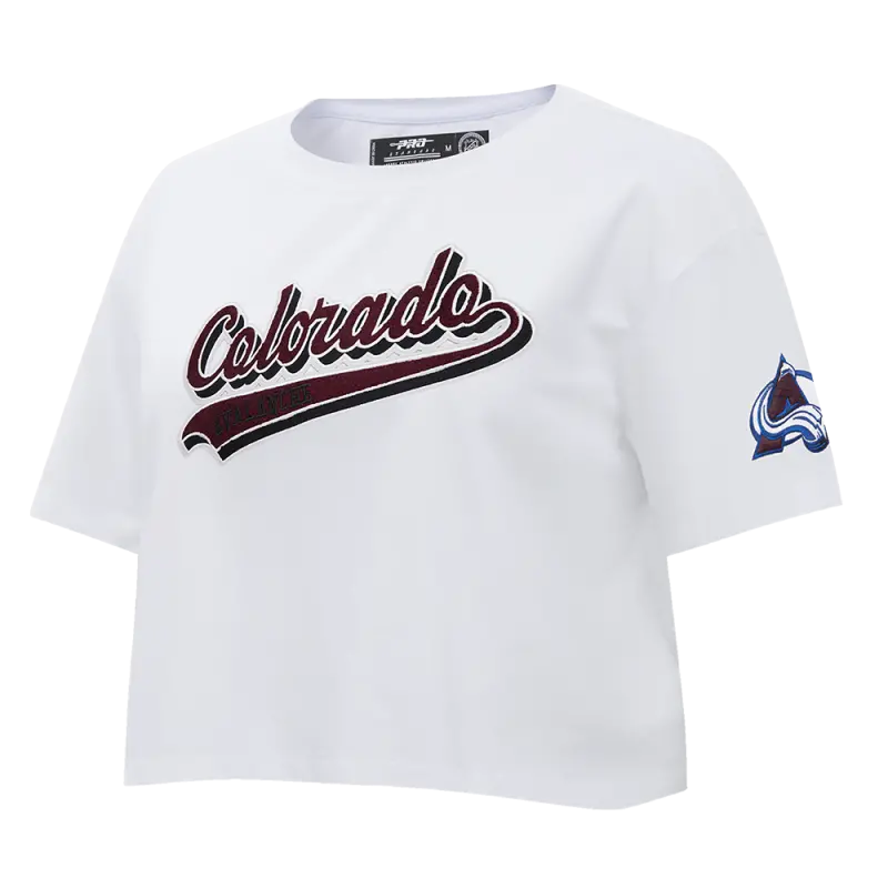 NHL COLORADO AVALANCHE SCRIPT TAIL WOMEN’S SJ BOXY TEE (WHITE)