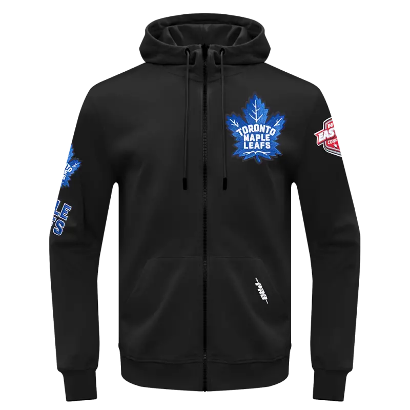 NHL TORONTO MAPLE LEAFS CLASSIC CHENILLE DOUBLE KNIT FULL ZIP PULLOVER HOODIE (BLACK)