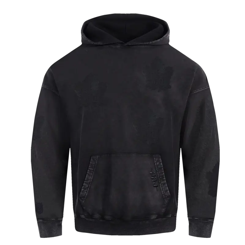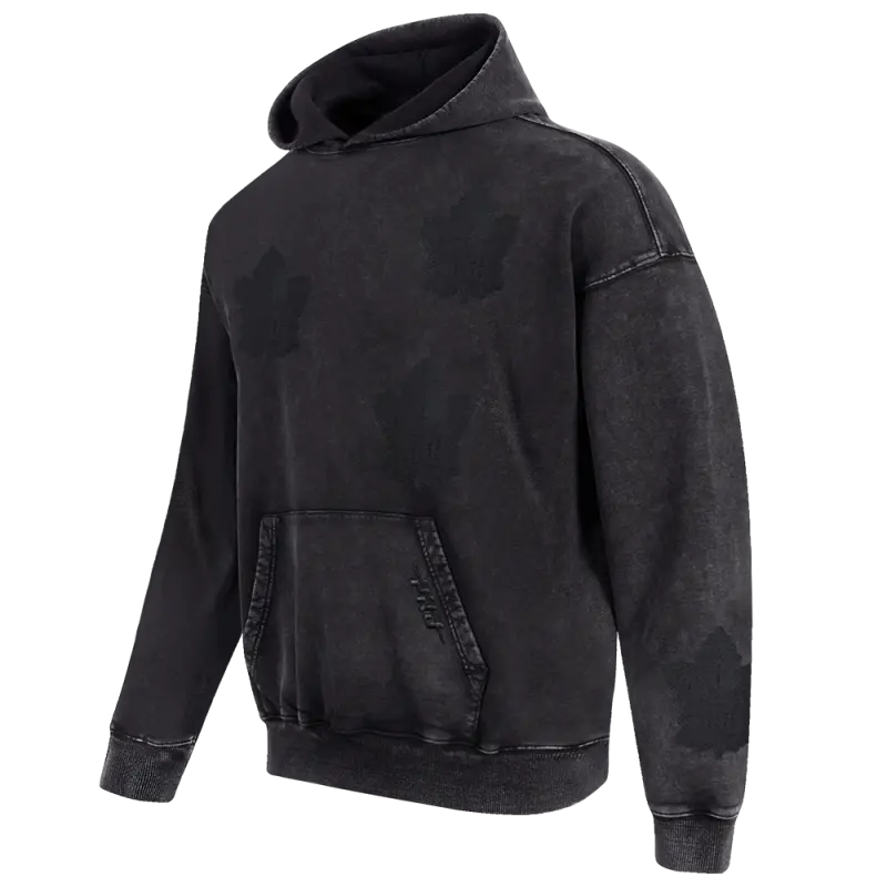NHL TORONTO MAPLE LEAFS WASHED VANGUARD MEN’S ENZYME WASH DROP SHOULDER FT PO HOODIE (WASHED BLACK)