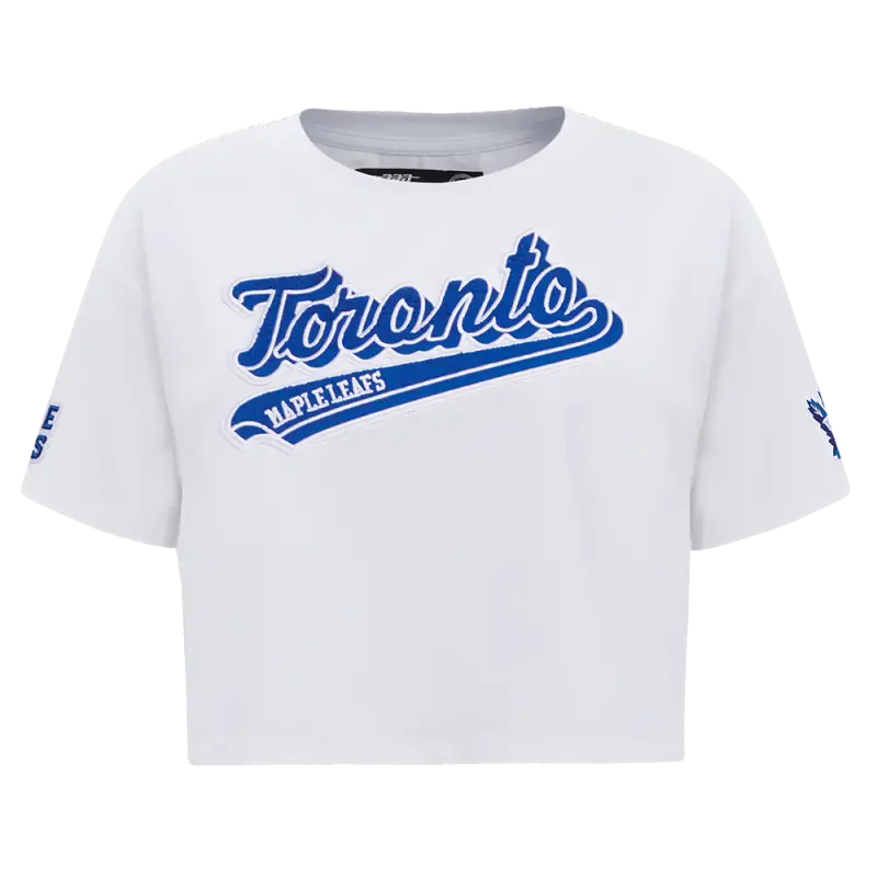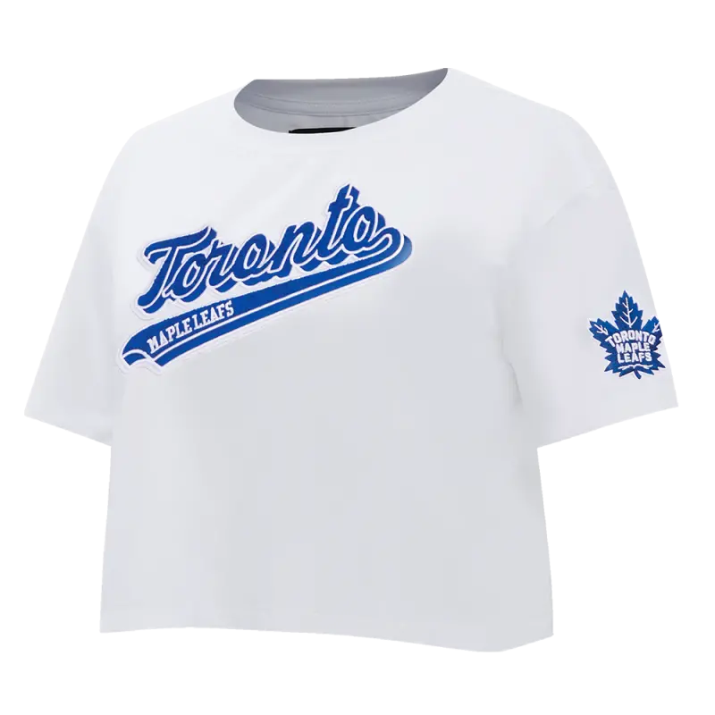NHL TORONTO MAPLE LEAFS SCRIPT TAIL WOMEN’S SJ BOXY TEE (WHITE)