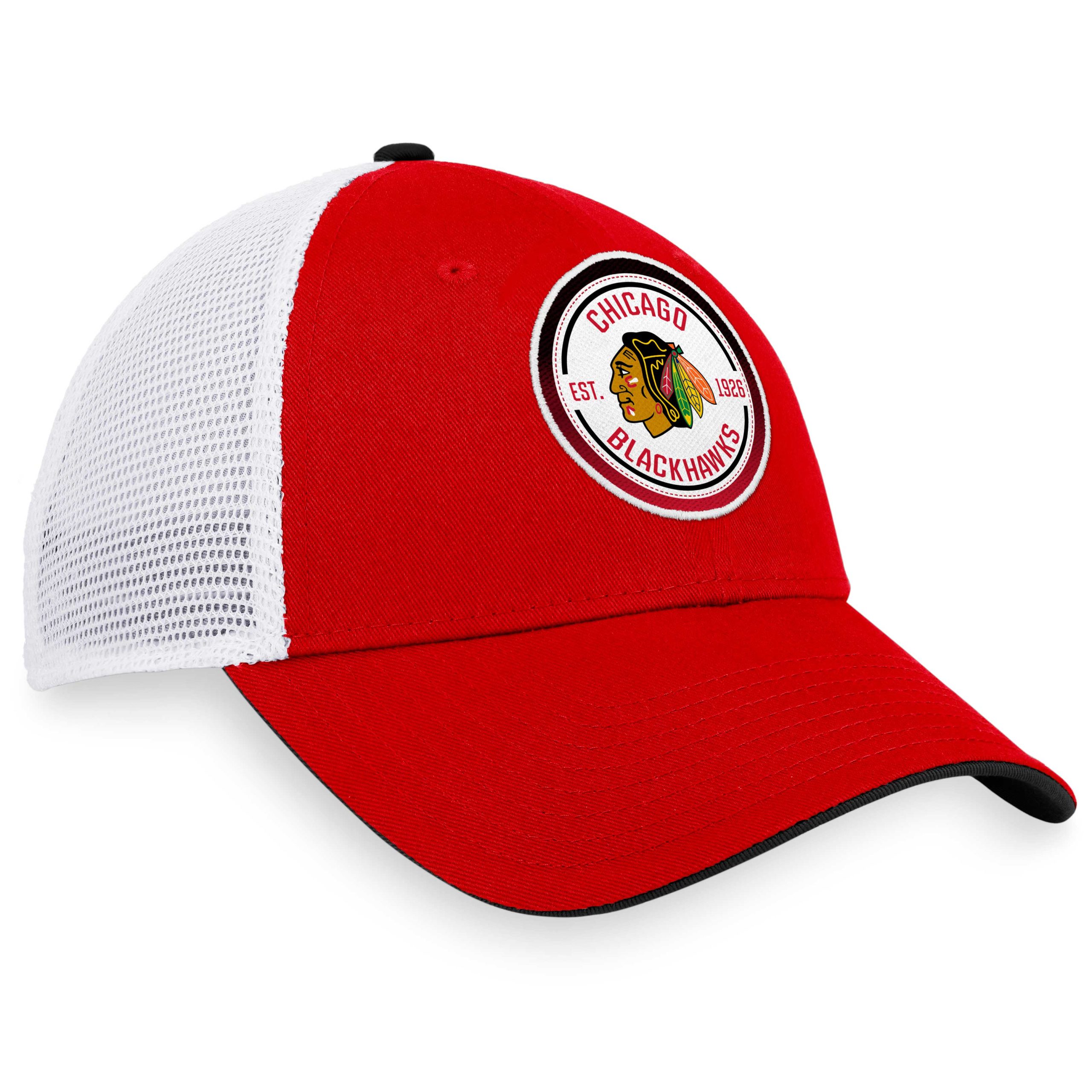 Complete your wardrobe when you grab this Chicago Blackhawks Iconic Gradient trucker snapback hat from Fanatics. Featuring a bold Chicago Blackhawks graphic on the crown and breathable mesh in the back, this cap is sure to easily become your go-to on game day.