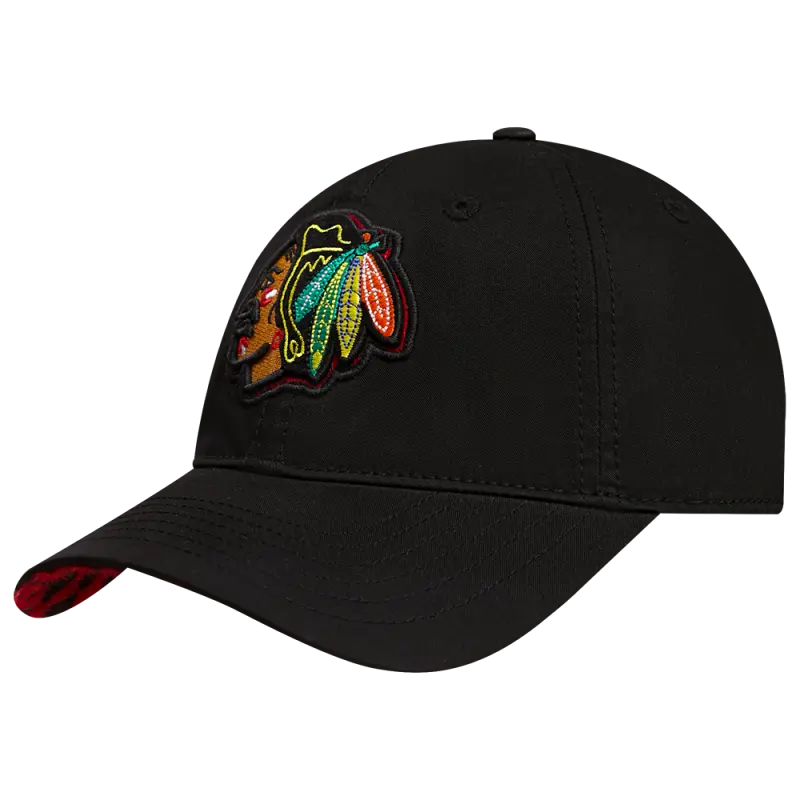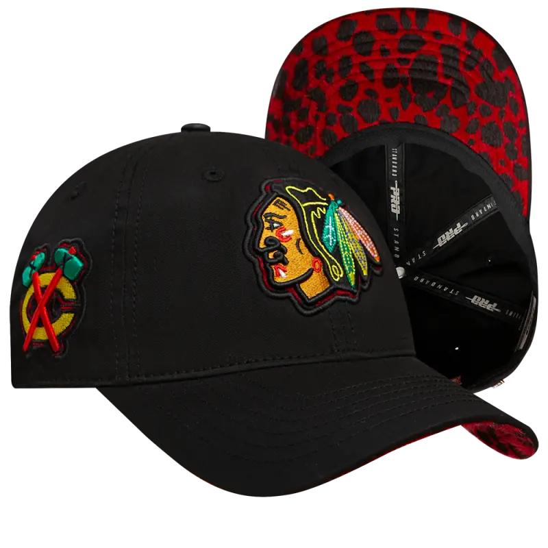 NHL CHICAGO BLACKHAWKS ANIMAL PRINT DAD HAT (BLACK)