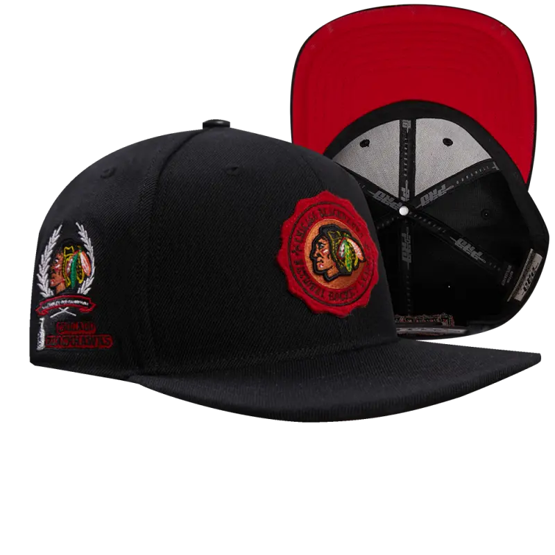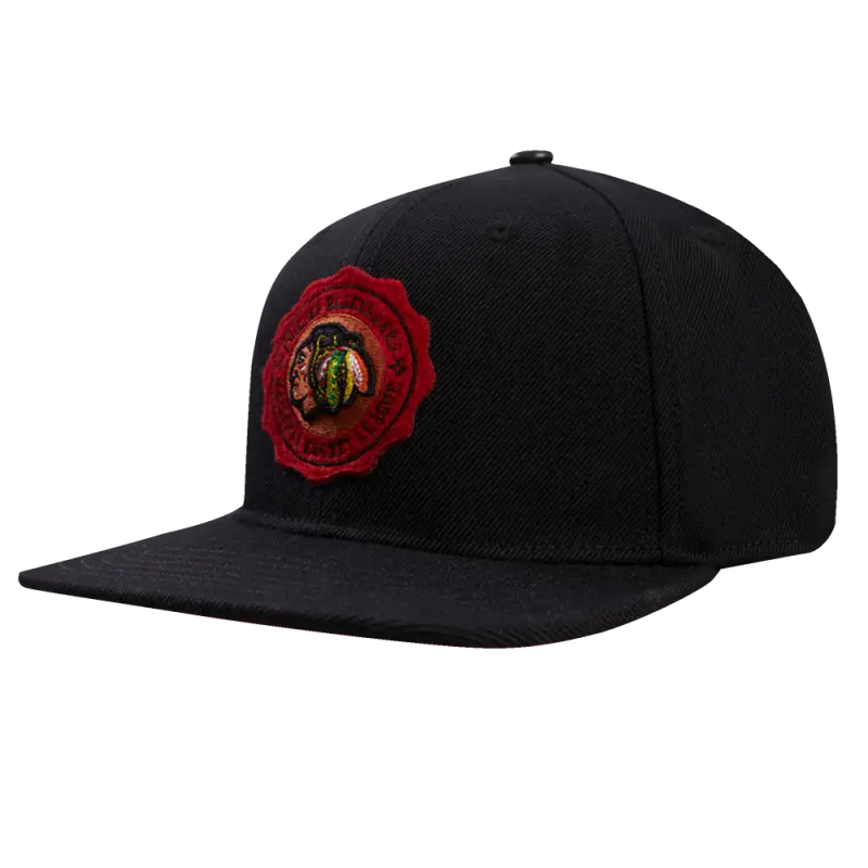 NHL CHICAGO BLACKHAWKS CREST EMBLEM WOOL SNAPBACK HAT (BLACK)