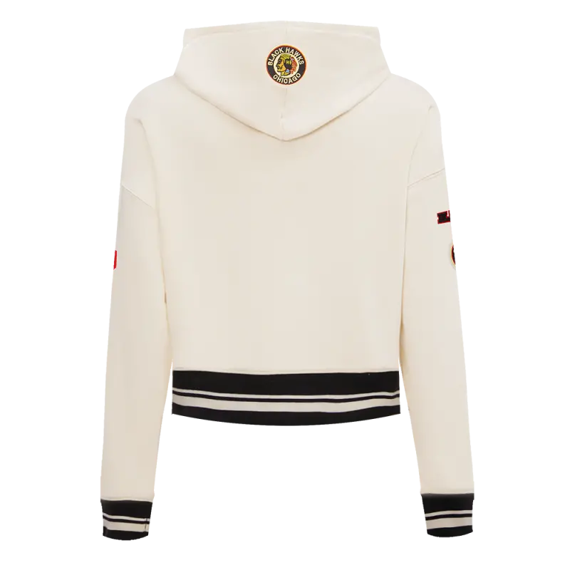 NHL CHICAGO BLACKHAWKS RETRO CLASSIC WOMEN’S RIB CROPPED PULLOVER HOODIE (EGGSHELL\/ BLACK)