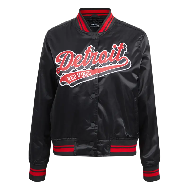 Home / Shop / Detroit Red Wings / NHL DETROIT RED WINGS SCRIPT TAIL WOMEN’S SATIN JACKET (BLACK\/RED\/BLACK)