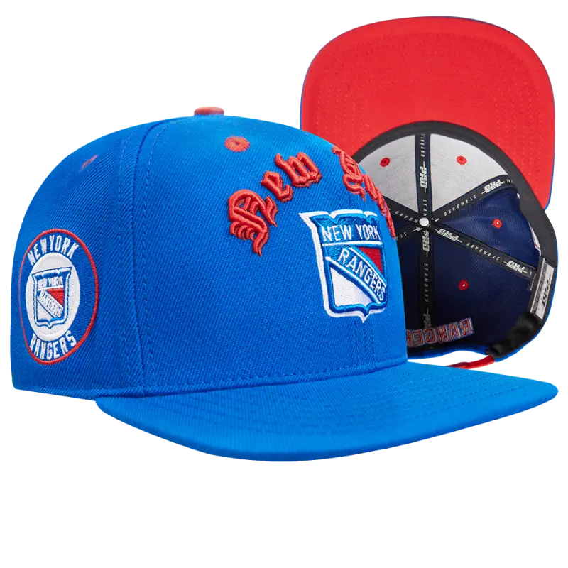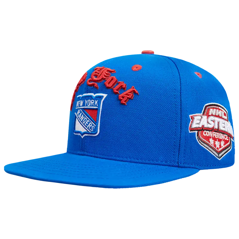 NHL NEW YORK RANGERS OLD ENGLISH UNISEX 6 PANEL SNAPBACK HAT (ROYAL BLUE)