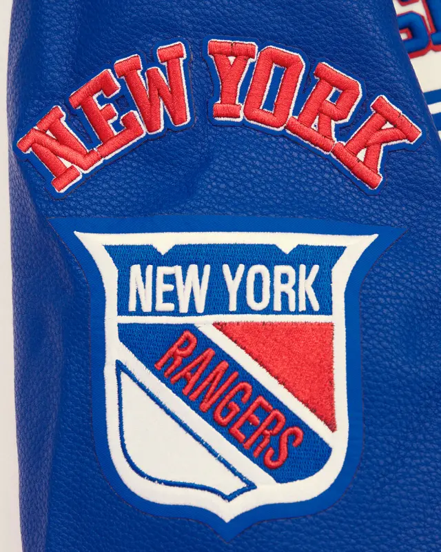 NHL NEW YORK RANGERS RETRO CLASSIC MEN’S RIB WOOL VARSITY JAC (EGGSHELL\/ ROYAL BLUE)