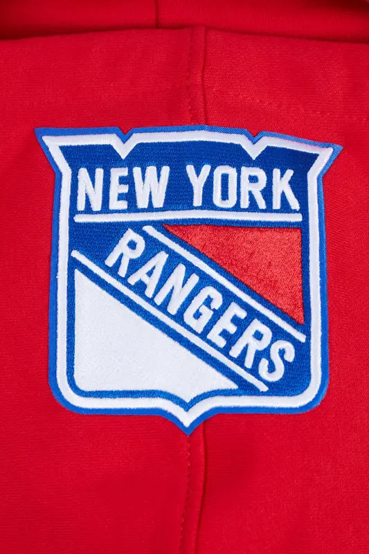 NHL NEW YORK RANGERS SCRIPT TAIL MEN’S RIB FLEECE PULLOVER HOODIE (RED)