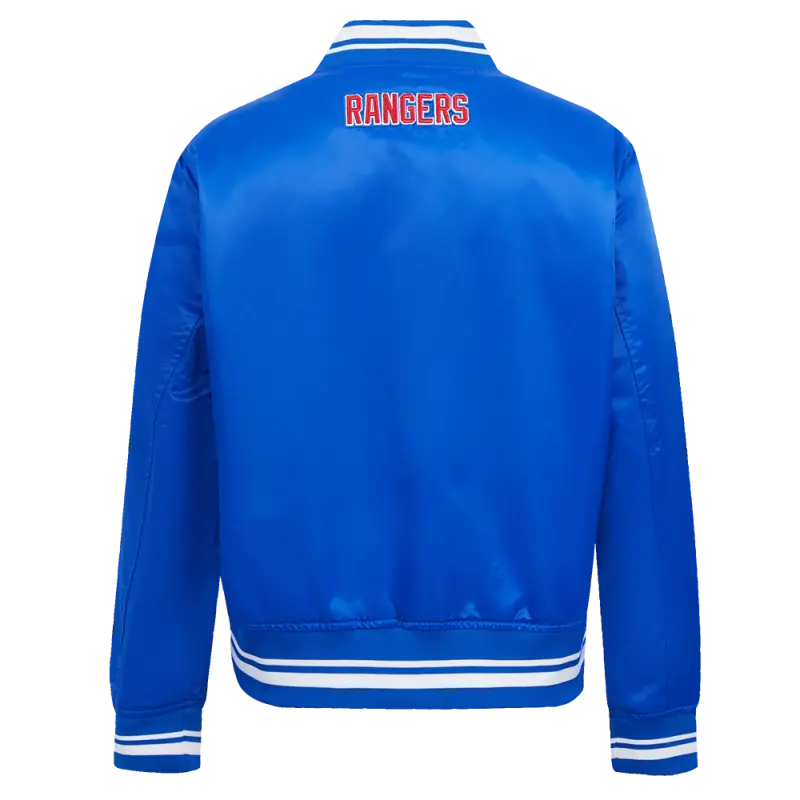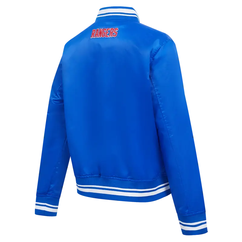 NHL NEW YORK RANGERS SCRIPT TAIL WOMEN’S SATIN JACKET (ROYAL BLUE)