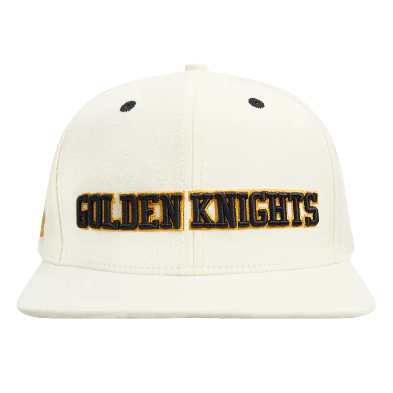 The Pro Standard Premium NHL Vegas Golden Knights Retro Classic Unisex Wordmark Logo Wool Snapback (Eggshell)