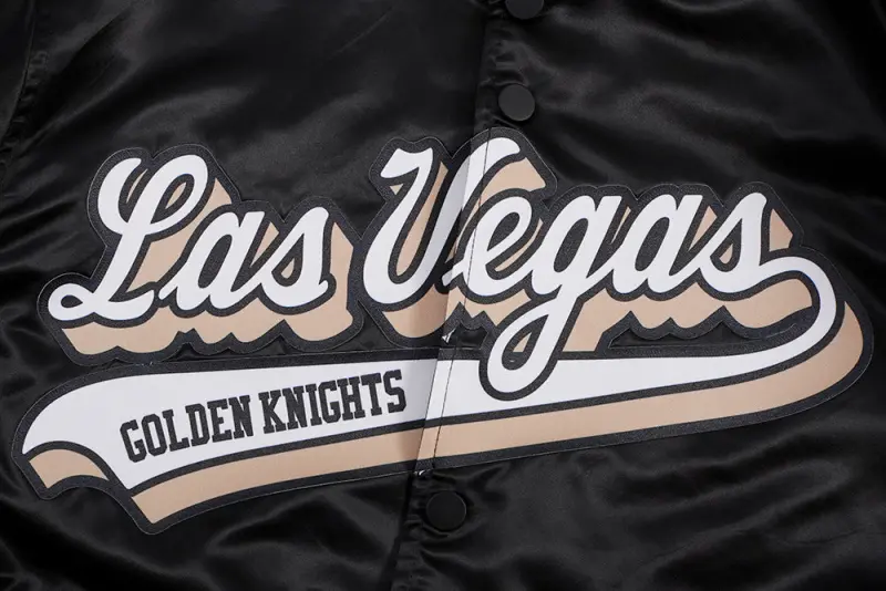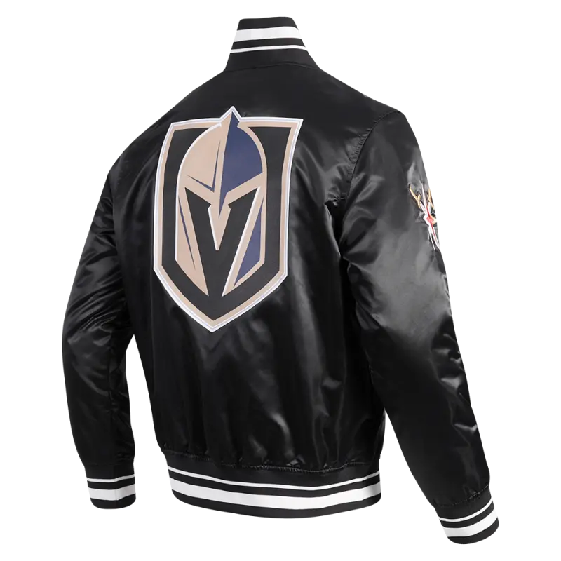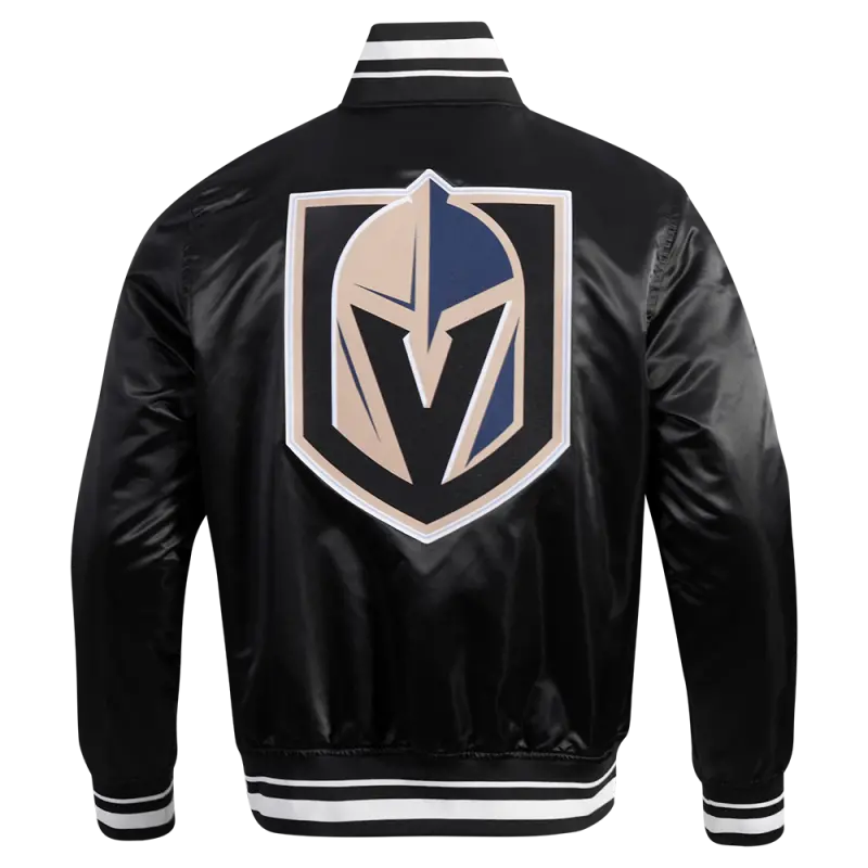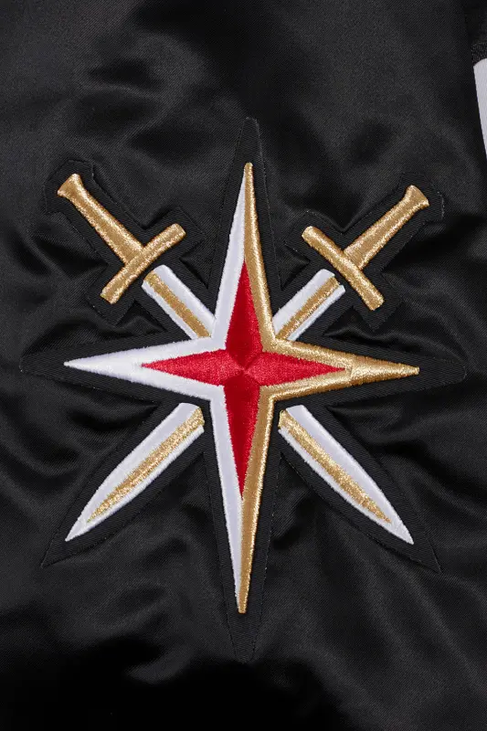 NHL VEGAS GOLDEN KNIGHTS SCRIPT TAIL MEN’S SATIN JACKET (BLACK)